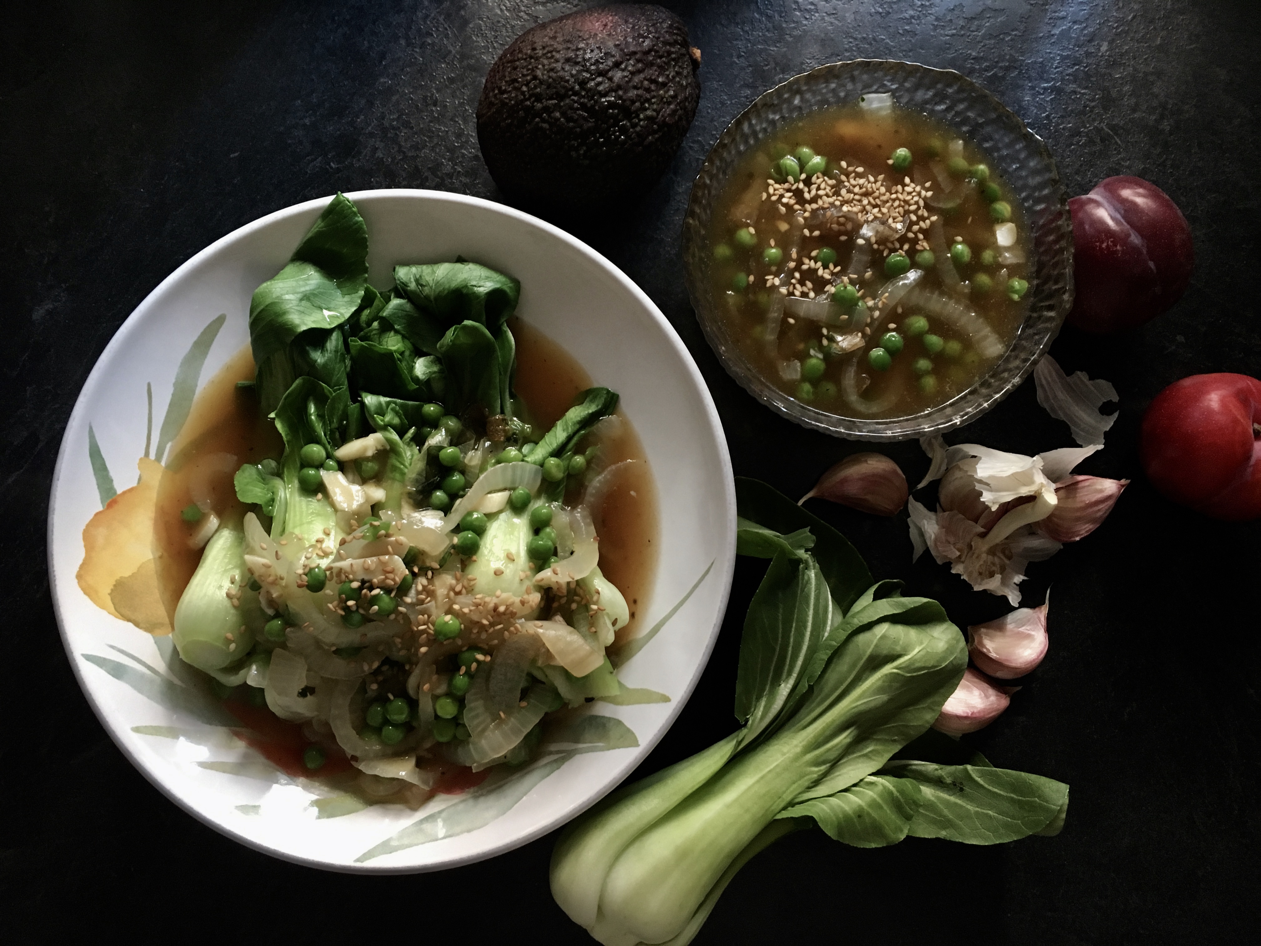 - 4 small pok choy, trim it according your preference, I just put it whole (I blancing the Pok choy, which is technique that put the vegetable in boiling hot water for a seconds then shock them with ice water, to maintain the texture, colour and flavour)