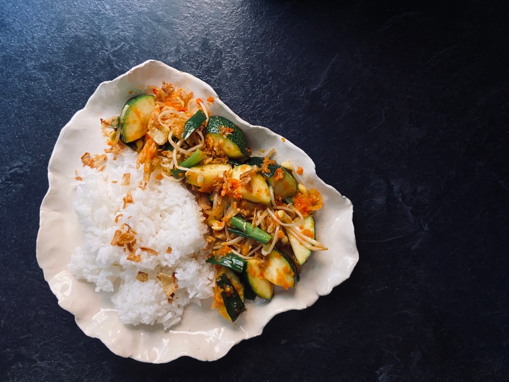 Let’s make this weird winter a bit brighter, hotter or warmer maybe? from this spicy fresh sour tomatoes sambal. But I hope you could find some zucchini, you could freely add some fresh mushroom like oyster mushroom, champignon or shiitake mushroom, any meaty mushroom to carried quite full body of spices.