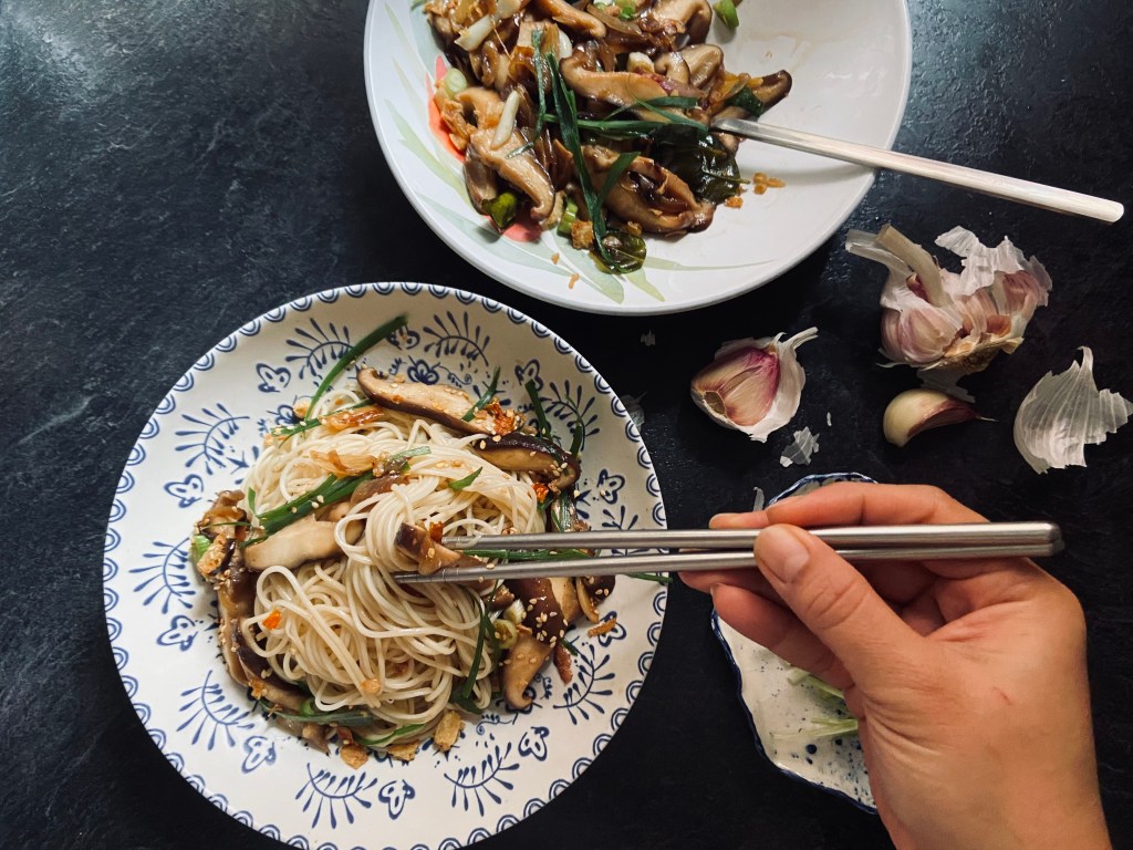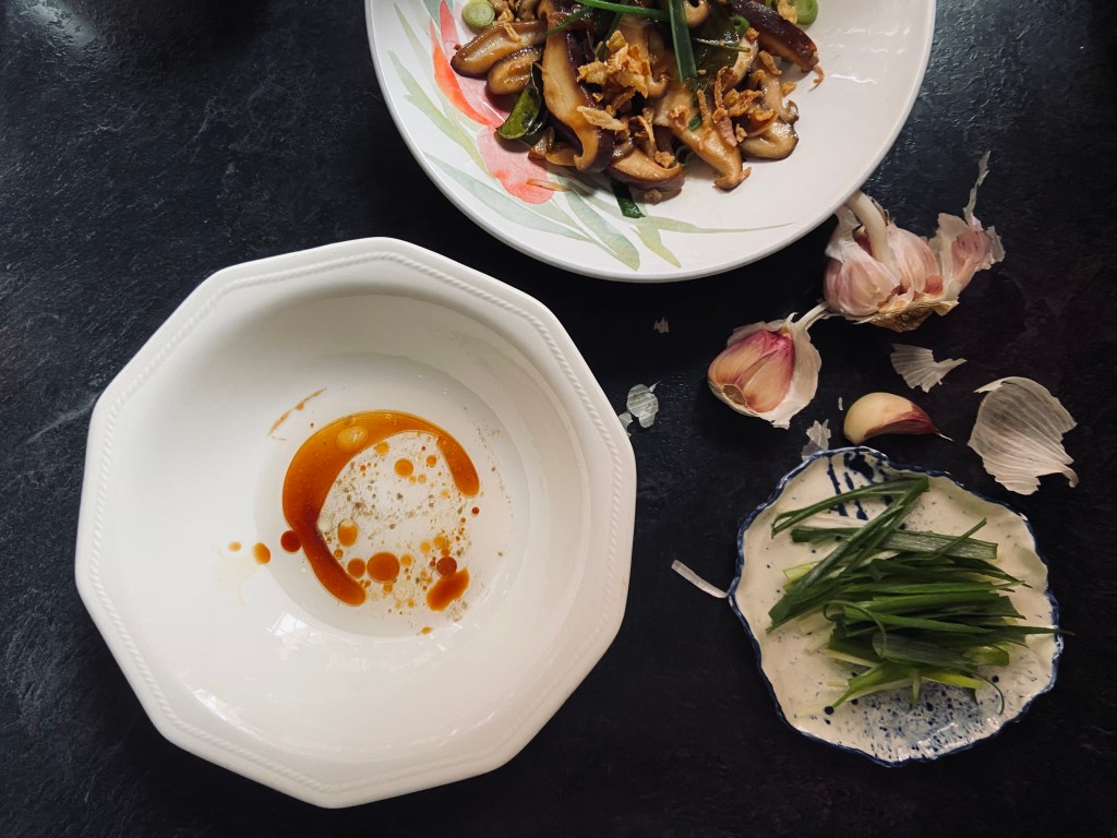- Sprinkle with slice spring onion and fried onion to serve. I also serve mine with dried chilli and toasted sesame seed.