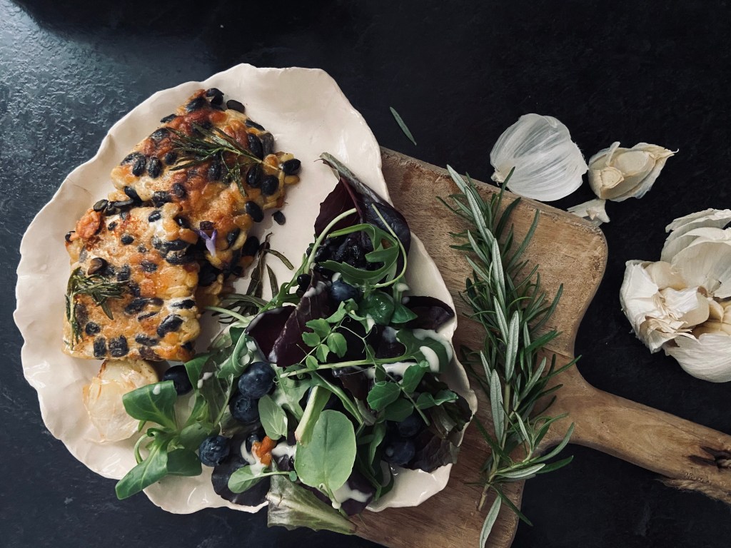 GRILLED TEMPE WITH GARLIC-ROSEMARY