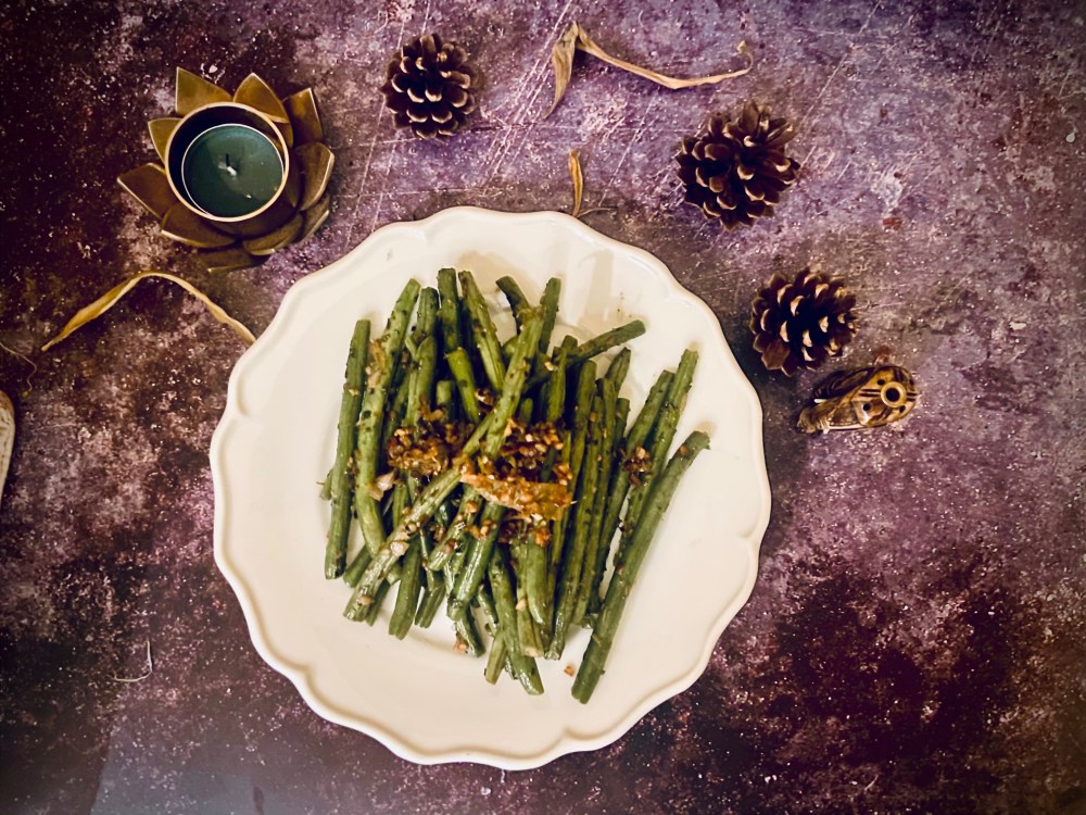 - In medium pan and medium heat, put inside the olive oil and garlic, sautéed just until the garlic fragrance, then put inside the cooked green bean, while you also adding the chimichurri in.