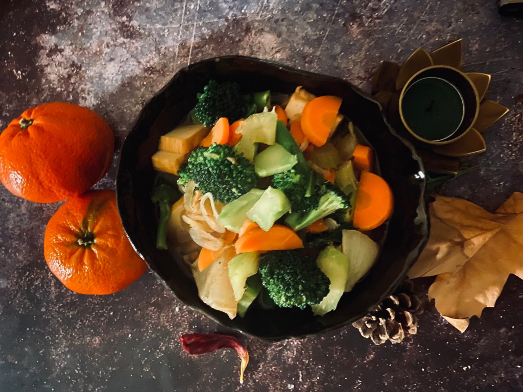- Seasoned with the vegan oyster sauce, sea salt and pepper, the bring in the broccoli and the water.